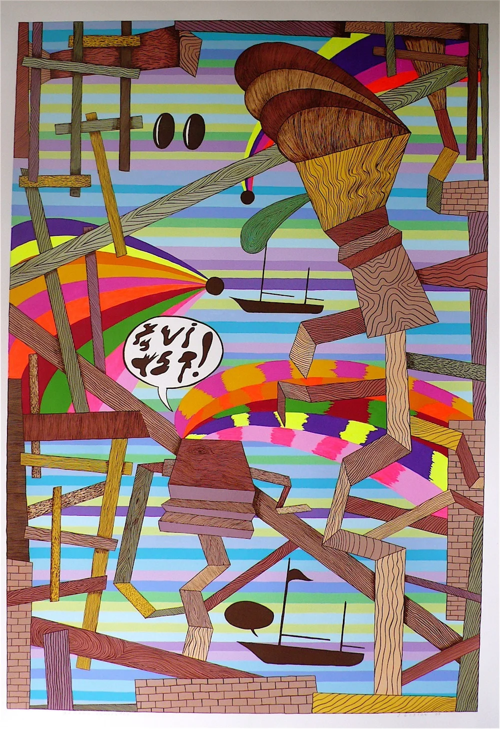 Log Jam 2009 gouache and flashe on paper 41" x 30"